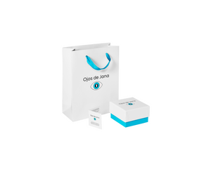 Riceverai in nostri gioielli in un packaging logato Ojos de Jana. Il nostro packaging è composto da un elegante scatola con all'interno la garanzia, ed una shopper.